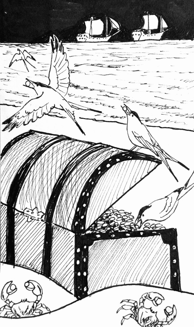 “Treasure.” Forgive the cliché. I wanted to try drawing ships from memory. The rest is meh.