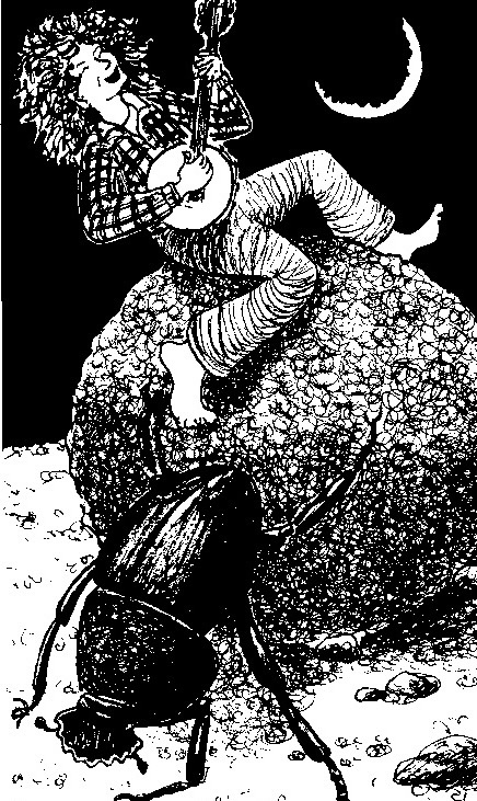The SCBWI prompt was “Ride,” so of course Banjo Woman was a shoo-in. As for the rest, I’ve been researching dung beetles for a writing project. “Mushroom.” I loved drawing this one! “Exoskeleton” made for a cool abstract pattern. It’s a dung beetle, of course.