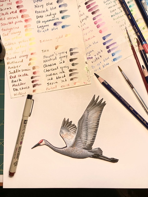Now I’m laying in the basic body and wing feather patterning with those same very pale markers.