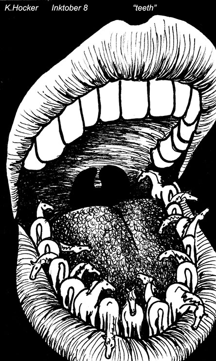Still, it made a fun inktober challenge for the prompt “teeth.” Why aren’t the upper teeth also horses, you ask? That’s a riddle for which I don’t have an answer…